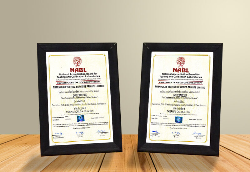 Thermolab Testing Services Private Limited has received accreditations in the discipline of Mechanical Calibration and Thermal Calibration by the National Accreditation Board for Testing and Calibration Laboratories (NABL).